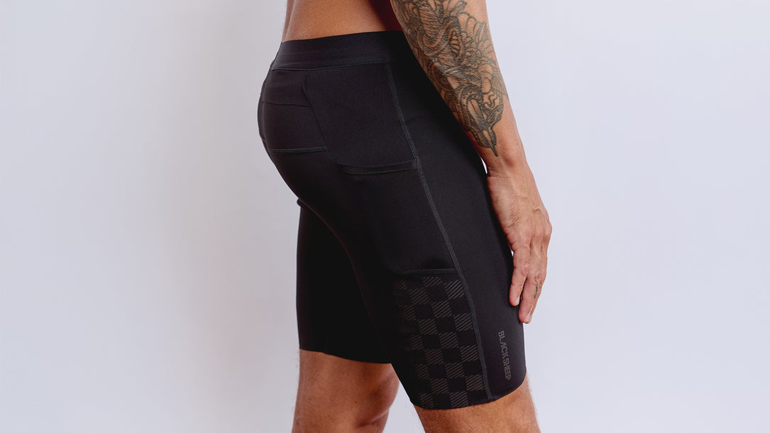 Ultra-light race short designed for speed, heat, and intelligent storage.